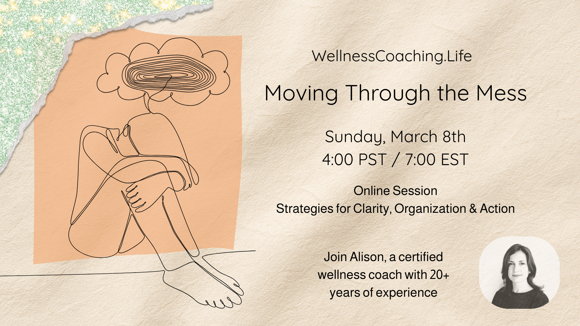Moving Through the Mess is a one-hour facilitated workshop that uses a research-backed exercise to help you find clarity, locate your own entry point, and take one sustainable step forward.